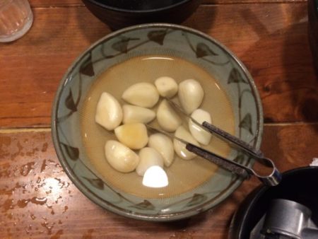 半月あたりで、ニンニクから硫化アリルがしみだしてきて、1ヶ月もすれば完成です。