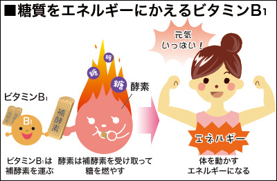 ビタミンB群は、エネルギーの吸収率を高める役割を持っています。そのため、ビタミンB群をとると体全体の状態が良くなります。