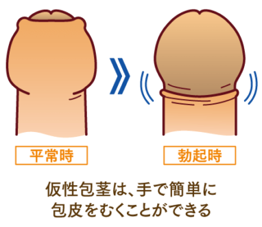 仮性包茎とは、「普段は皮をかぶっていても痛み無く亀頭を出すことができる」「オナニーやセックスでも痛み無く射精できる」状態のことを言います。