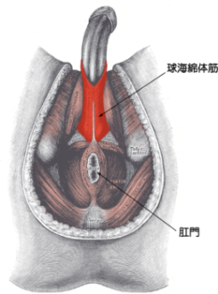 球海綿体筋は、先ほどの写真のように肛門とペニスの付け根の間にある筋肉です。
