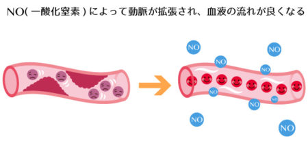 NOはペニスの血管をやわらかくする働きをします。つまり、NOが減ると血管が硬くなり、ゆるまなくなるため、ペニスへの血流量が減り、ペニスが小さくなってしまいます。