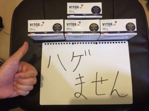 私も上の写真のように、ヴィトックスαを4箱(4ヵ月)分飲んでもまったくハゲていません。