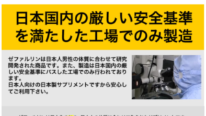 また、ゼファルリンが作られるサプリメント製造工場は日本の厳しい法律で安全性が保たれています。厚生労働省・福祉保健局・保健所から常にチェックを受けているのです。そのため、ゼファルリンはとても安心・安全に飲むことができるサプリです。